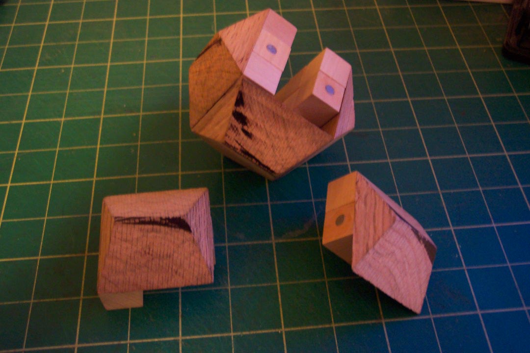Most of the time people complain that my manipulative/assembly puzzles are too hard, but this one was solved by every team... maybe because there were not that many pieces involved. Six pieces had to go together to form a regular dodecahedron. It was a wooden puzzle with magnets that I had constructed about one year ago.