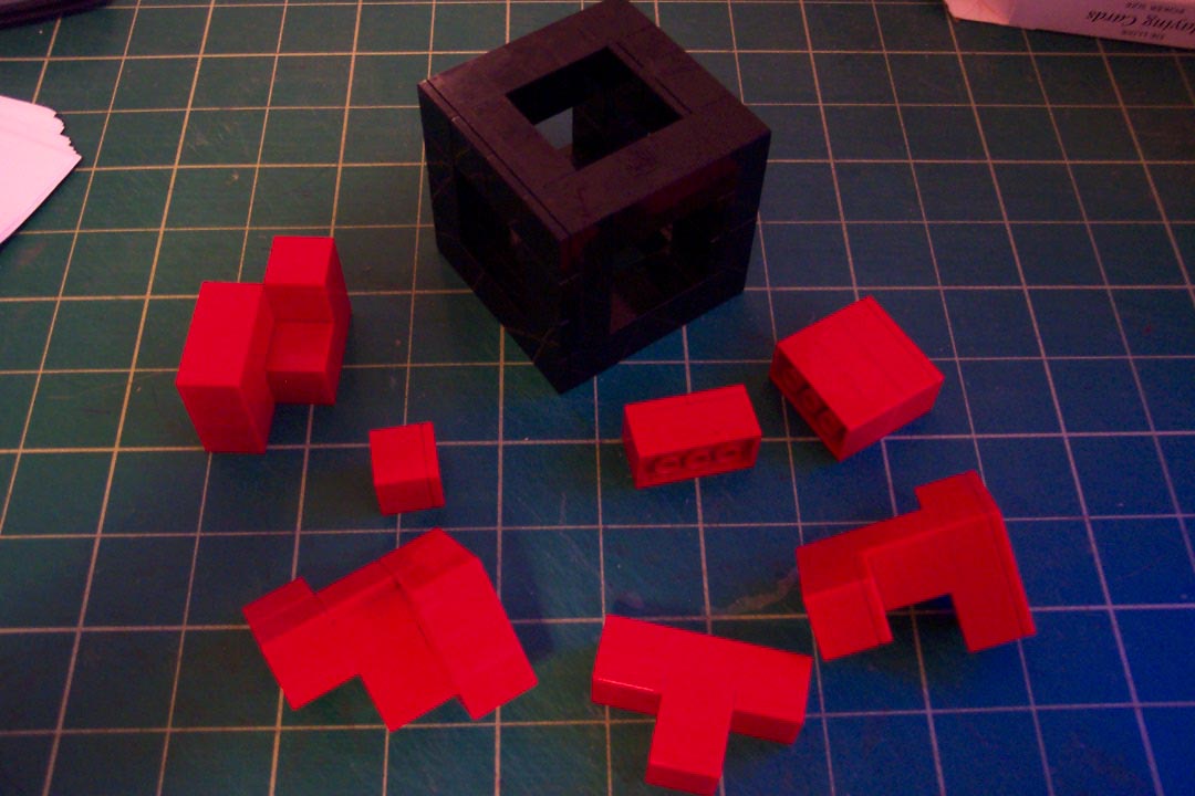EncagedAnother assembly puzzle. this one proved much harder, and only one team solved it. The puzzle was built out of LEGO bricks and involved getting the seven red pieces positioned completely within the black 'cage' to form a perfect cube shape.A through ZA straightforward wordplay puzzle wherein the Players had to find a list of words which had the letters of the alphabet embedded sequentially. The example given was this:carbon decide fairing him joker limber no piqued rusty curvy twixt yellow lizardThe score was equal to: (100 - LENGTH OF LIST). The example above was 68 letters, so the score would have been 32. Can you find better? All of the teams did quite well. The wordlist used as reference was based on a slightly out-of-date tournament Scrabble list.