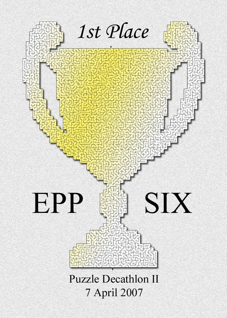 EPP6: Puzzle Decathlon IIWe have some winners!Congratulations to Bob Gillis and Danny Belu! They came out on top in a very competitive day of puzzle solving. Trophies were given out to the top three teams as follows: