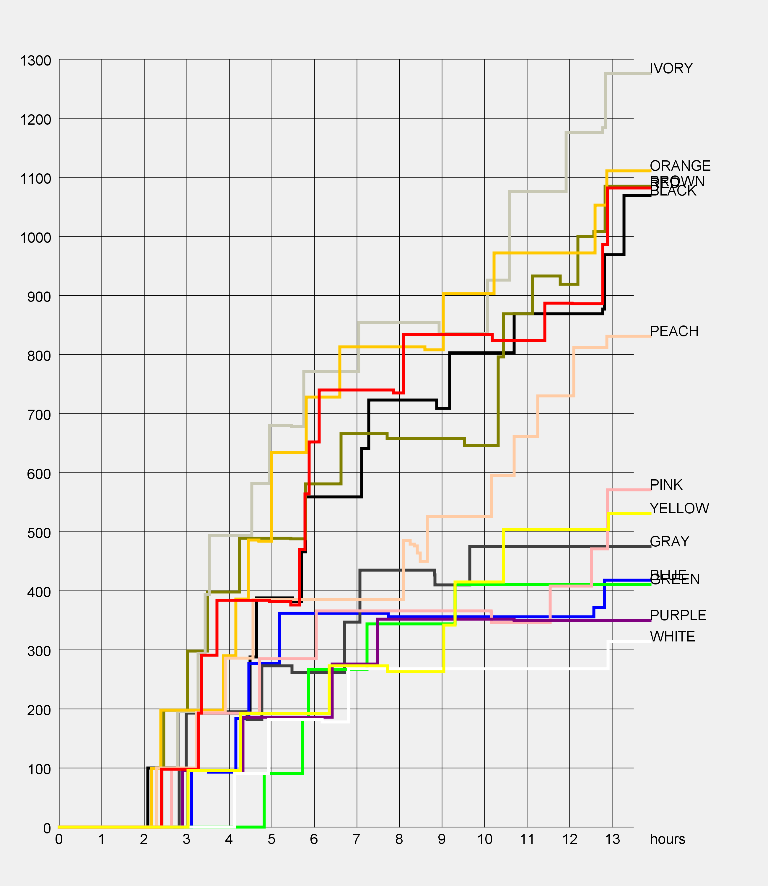IVORY (51) ORANGE (52) PEACH (37) PINK (43) PURPLE (19)
