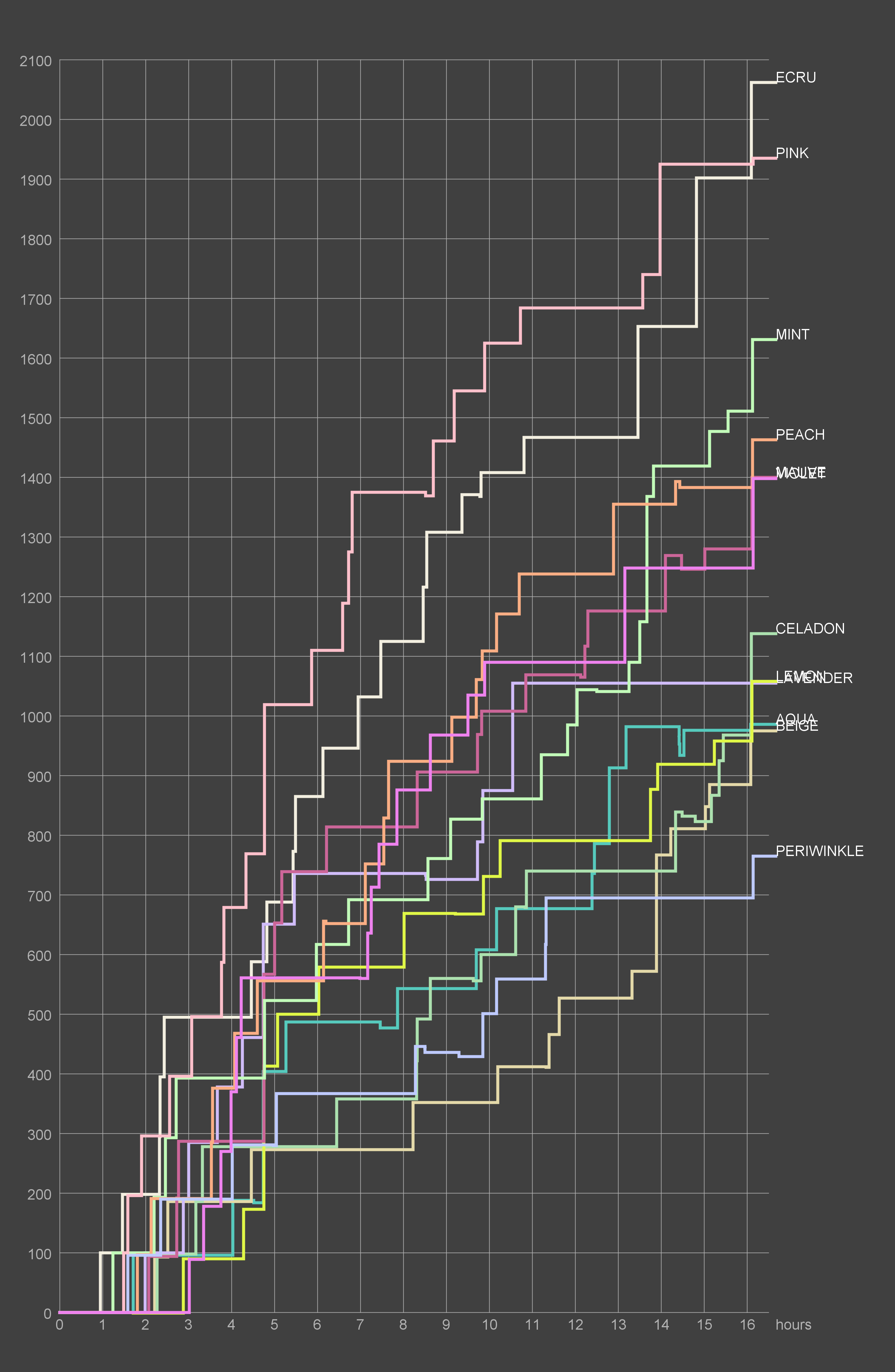 PEACH (41) PERIWINKLE (48) PINK (60) VIOLET (24)