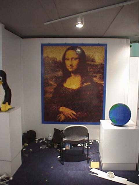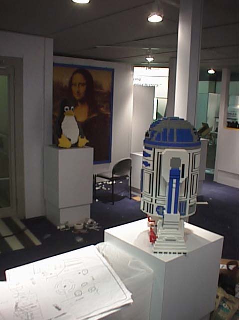 But all of the models ended up at the first show relatively undamaged, and what damage there was was repaired (they are LEGO bricks, after all). Set up the first night before the opening day was busy, but by late evening all of the models were in place (including a 5 foot by 6 foot Mona Lisa mosaic).