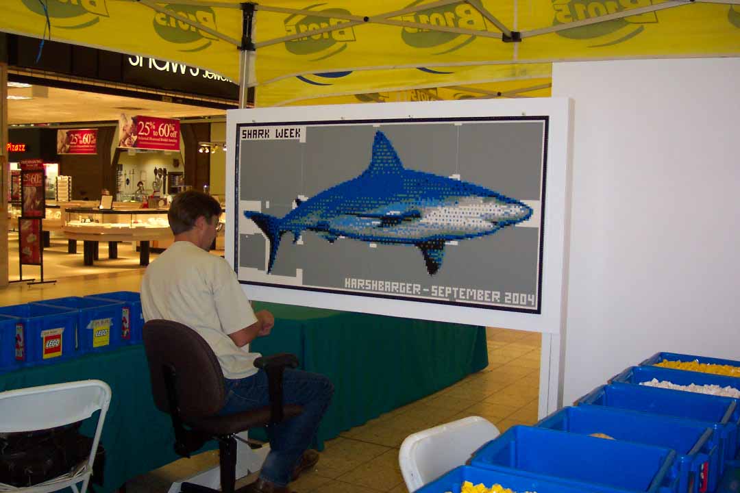 Being 'Shark Week' and all, the radio station got me a picture of a shark and asked if I could build a mosaic of it, at about half the size of Buzzy.