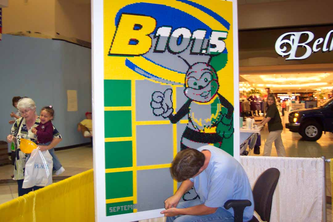 Continuing in my current spate of LEGO mosaic constructions, in September of 2004 I built two mosaics for a promotional event in Fredericksburg, Virginia. About 6 months earlier an area radio station, B101.5, contacted me and asked for my ideas about what could be done at their upcoming eighth annual Kids Convention.
