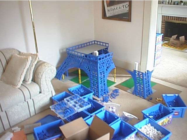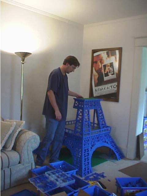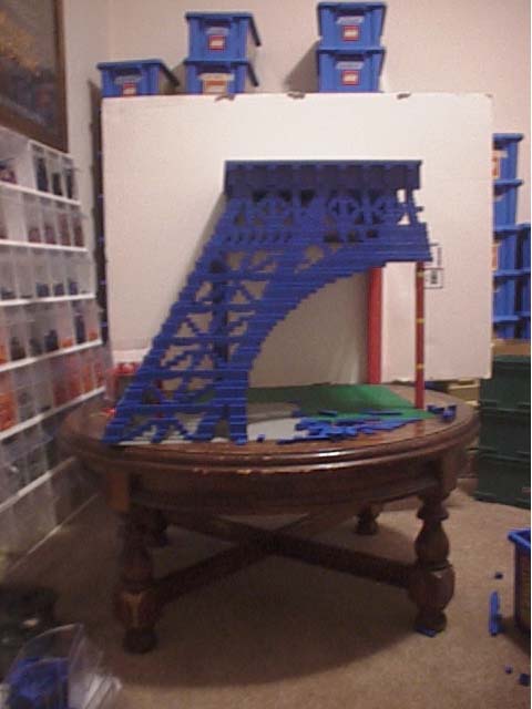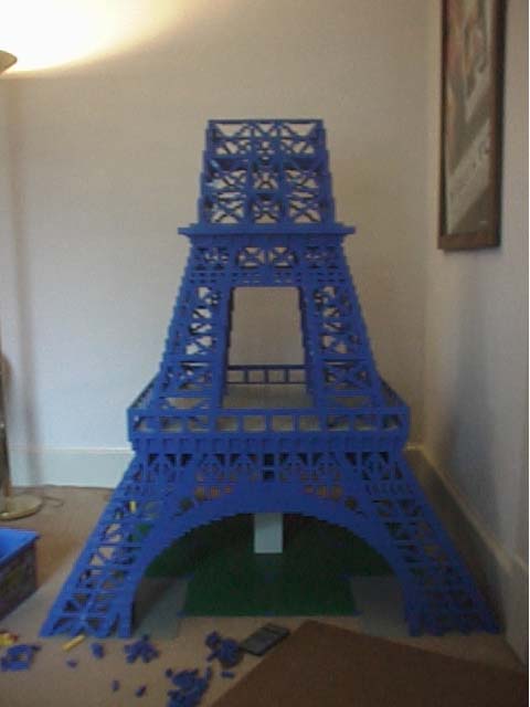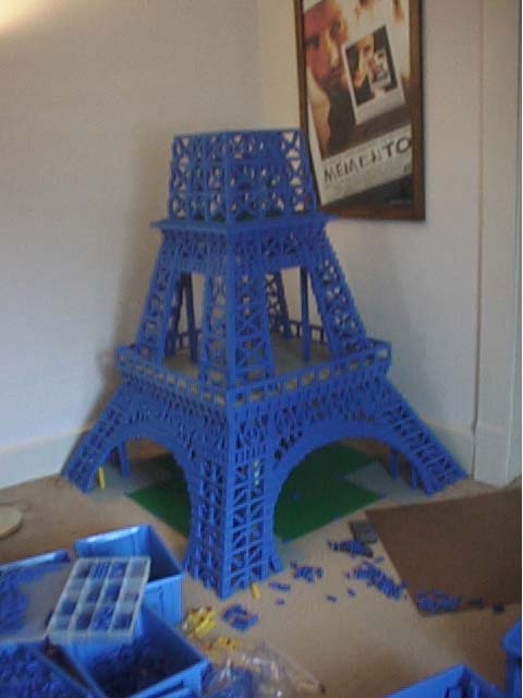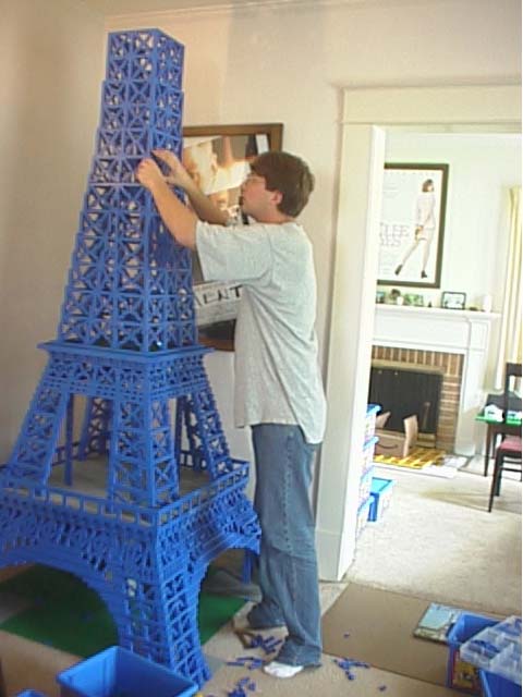 Knowing that I would be getting the bricks back after the event was over, I decided I would build all of the models without any glue (and thus be able to recycle the bricks back into my supply). The Eiffel Tower, of course, is a rather delicate structure, so building a twelve foot tall version sans glue proved tricky.