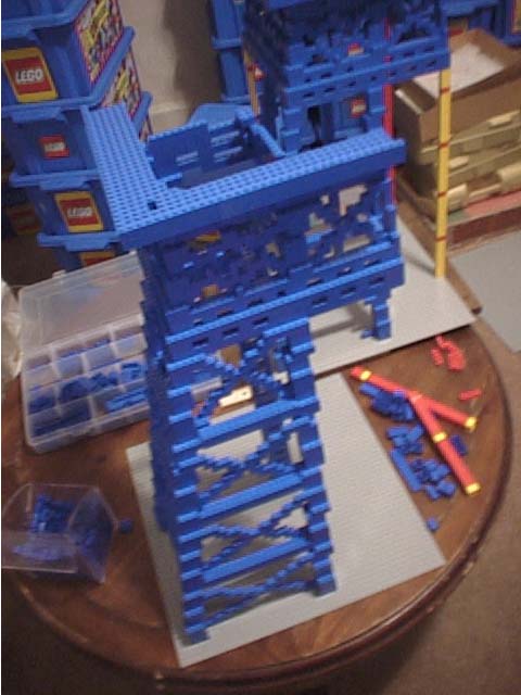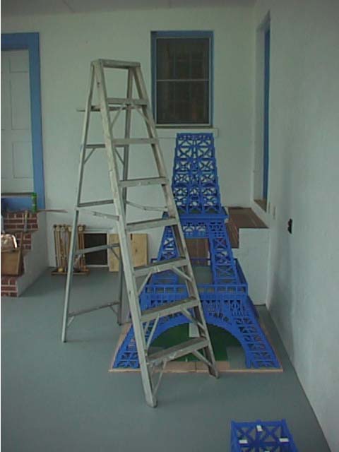 I didn't know exactly how tall it would turn out to be. All I knew at the beginning was that the 'footprint' of the base would be 50 inches square; so I started with that and a small picture of the tower and began building.