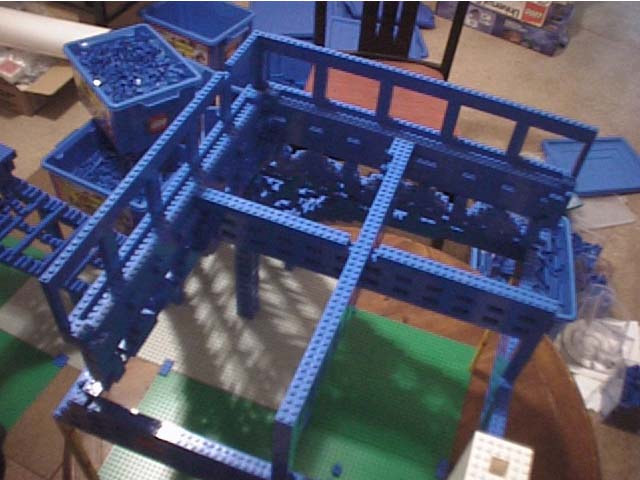 I began assembling the sections in the living room of my house, but soon realized it would exceed my nine foot ceiling... I'd eventually have to move it outside. I would build a couple of the modules and then stack them as I went along.