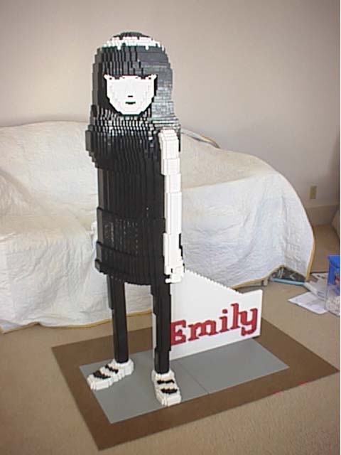 At some point later that evening it dawned on me: Black... white... hmmm... I could build a sculpture of Emily out of LEGO bricks. That would be coooooollll...