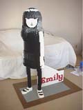 Emily The Strange stands just over 4 feet tall. She is built with about 50 pounds of LEGO; almost all of them black, of course.