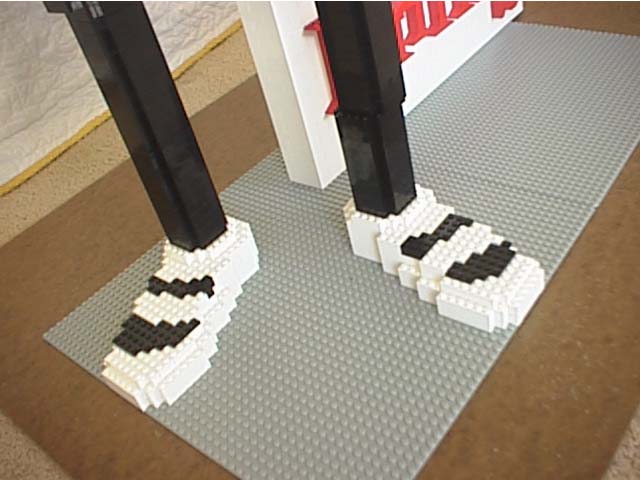 After constructing the figure, I also built a support wall with the red letters of her name. This wall helps balance the heavy torso (those skinny legs do so precariously, at best).