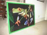Red-eyed Tree Frog. (Agalychnis callidryas) Habitat: Tropical rainforests of Central and northern South America Facts: These nocturnal frogs spend the daylight hours hidden on the undersides of leaves with their eyes closed and their limbs held tightly against their body. This behavior both conserves moisture and provides camouflage for the frog. They becomes active at night, climbing from branch to branch in a foot-over-foot motion, grasping branches with sticky toe pads and opposable fingers in search of insect prey. The striking coloration of the red-eyed tree frog: green back, blue flanks, yellow feet, and red eyes make them one of the world's most distinctive and most photographed amphibian. They are completely arboreal, or tree dwelling and rarely descend to the ground. Their long limbs are more suited to climbing and jumping than swimming. Eggs are laid on a leaf high over a pond or stream and hatching tadpoles fall into the water below. After metamorphosis, they climb back into the trees. |
