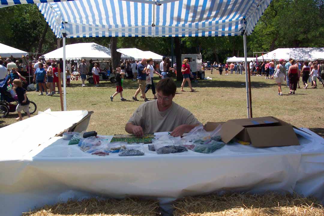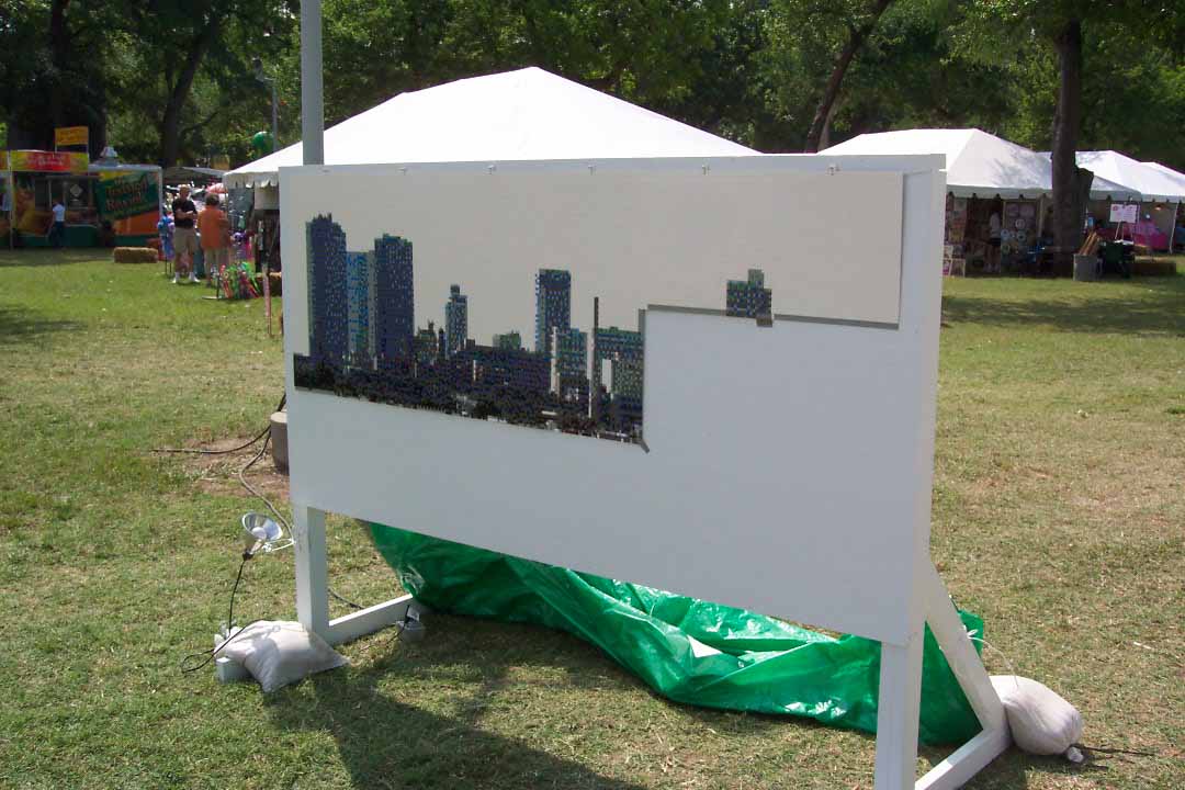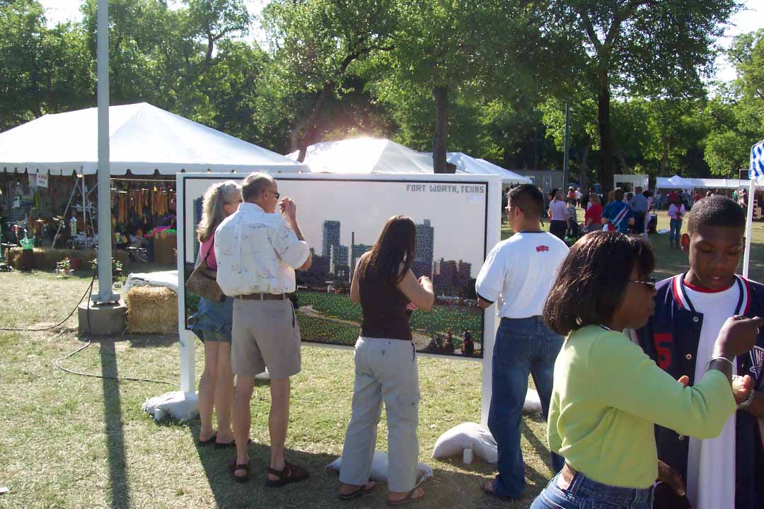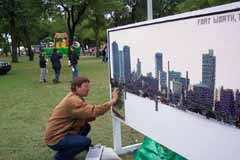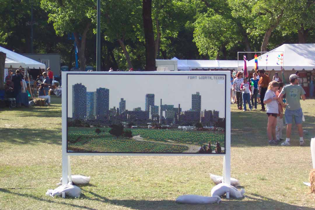 Fort Worth is only about an 11 hour drive from Auburn, Alabama, so I left Wednesday morning. Thursday afternoon was the start of the event, so I had no trouble setting up in the park (the organizers had prepared properly and had a large free standing 'wall' built upon which I would construct the mosaic).