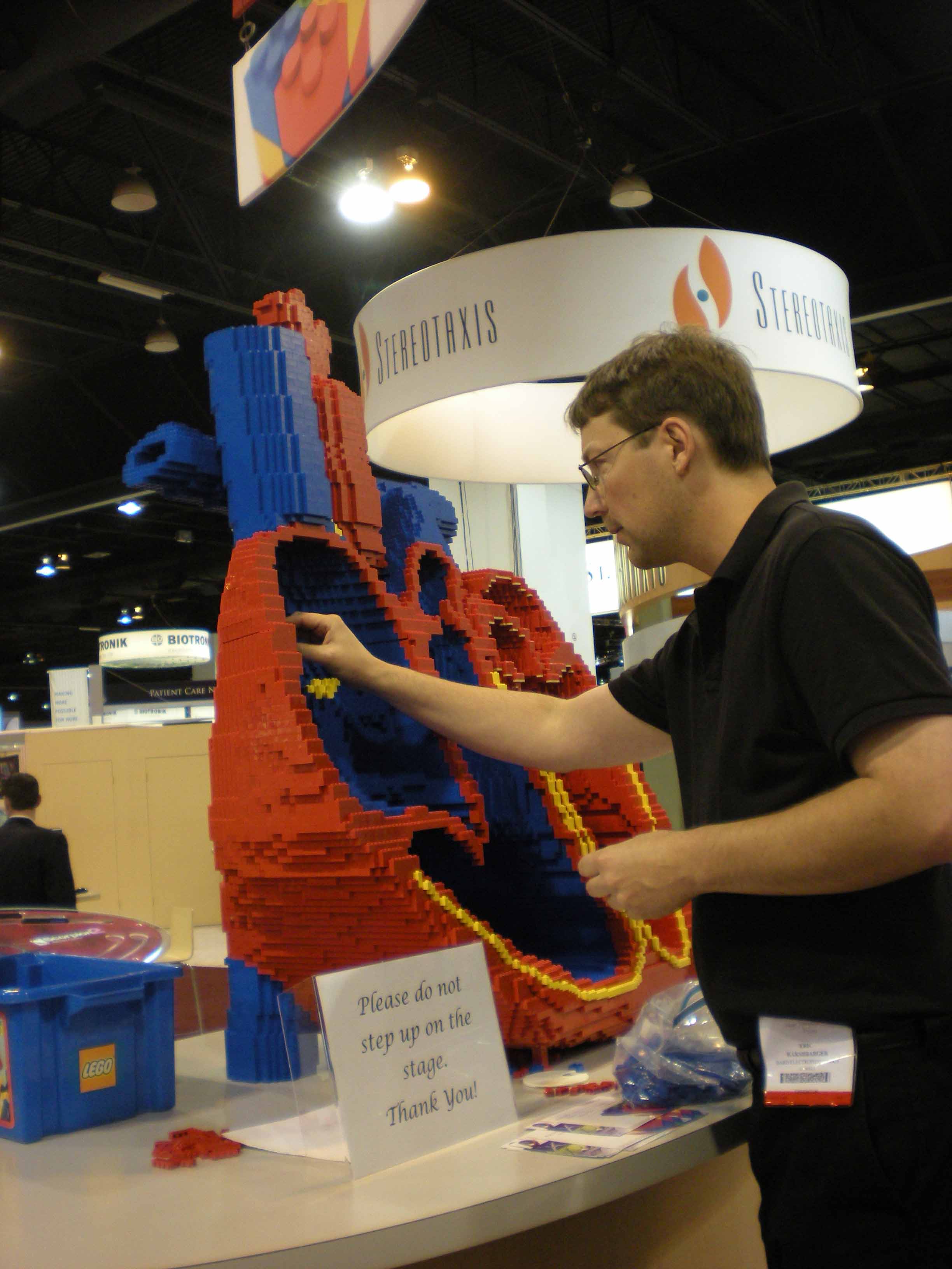 A few weeks before an exhibit company had contacted me and said that their client (BARD, cardiological company) wanted a four foot tall cross-section of a human heart built out of LEGO. They wanted to know if I could build such a model and finish it on-site at the Heart Rhythym Society conference in Denver during mid-May.