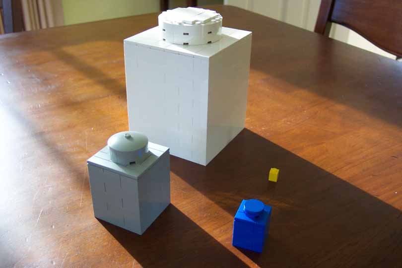 I have a fascination with building enlarged scale models of classic LEGO things... building them out of LEGO bricks. In addition to the Knight16 I built years ago, I have also built a 3x scale model of the classic LL924 Space Cruiser, and experiemnted with enlarged models of the basic brick.