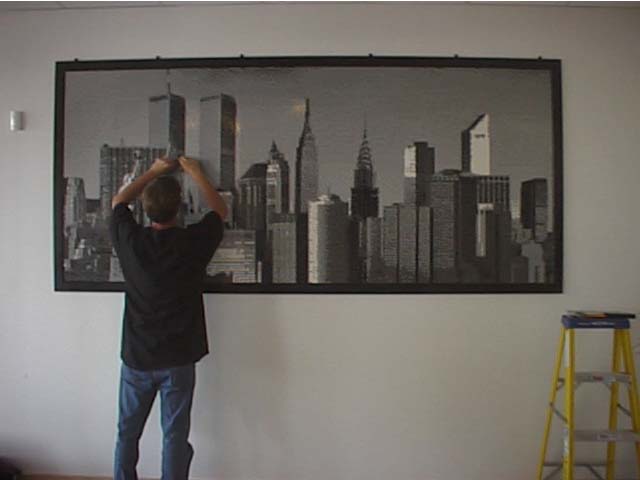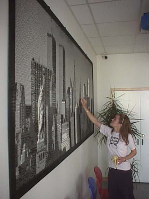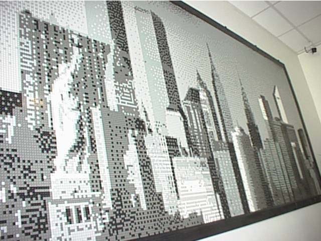 Earlier this year (2001) I discussed with LEGO the possibility of building a mosaic for their offices. It was a quick decision to do a mural of the New York skyline. Which picture to actually use took a little longer to decide.