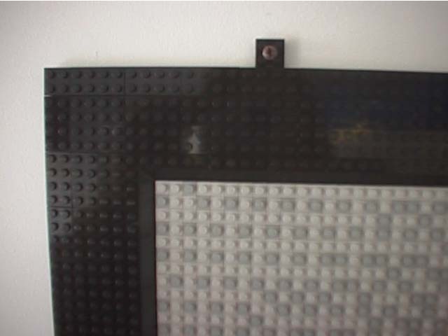 We started by hanging the top row of baseplates (technic plates with holes in them were used in conjunction with screws to fasten the mosaic to the wall along the top).