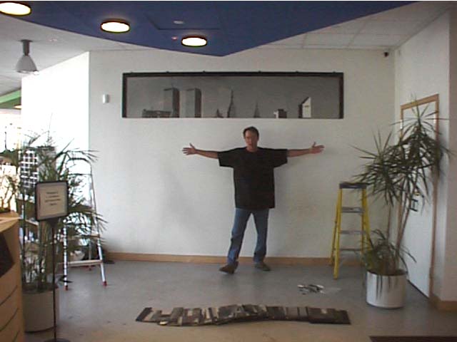 Everyone seemed pleased with the result, so what could have been an experiment in LEGO tragedy turned out to be a wonderful experience for all. Thus, if you ever make it by the offices of LEGO Direct in New York, just as you enter the reception area of the LEGO area, look to the right... it'll be hard to miss my handiwork. My image comprised of Physical Pixels.