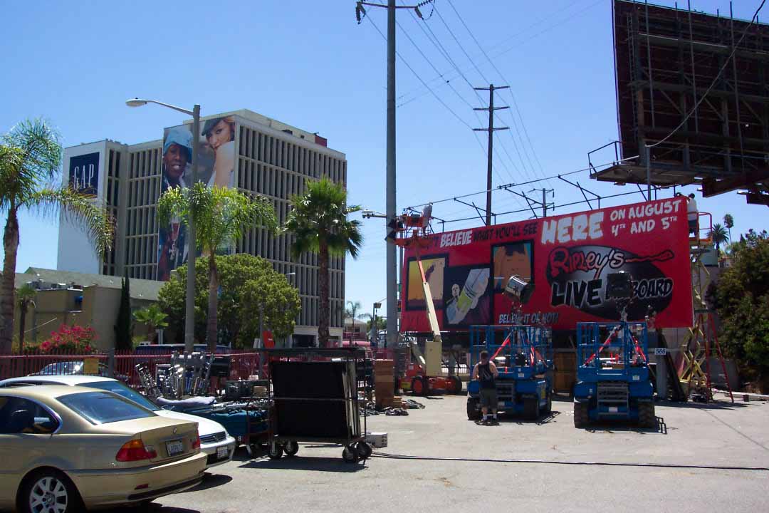 I was told to be on site around 1 o'clock. Still being on Central Time, and being one who usually gets up around 7am, I was awake rather early despite the exhaustion normally associated with flying the previous day. I spent a couple of hours walking about Sunset Blvd. and then returned to the billboard site about 11:30.