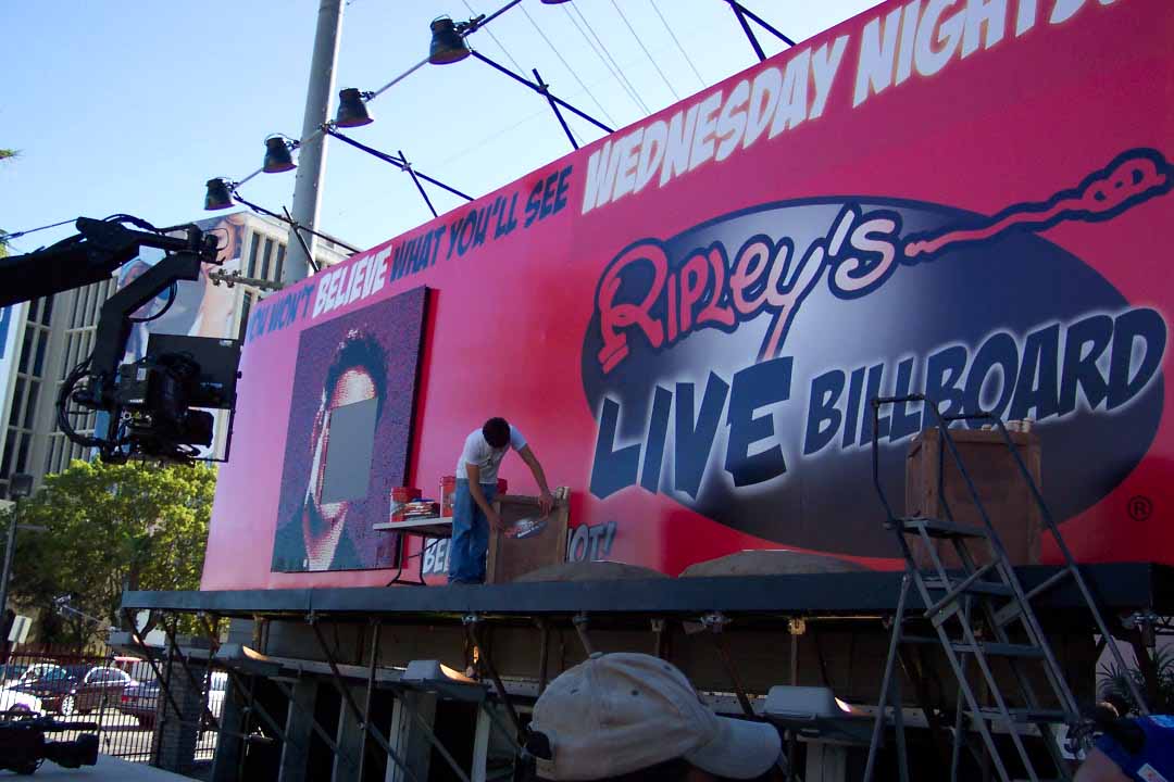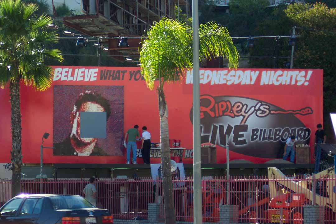 While discussing the possibilities via email and telephone, one of their producers pointed out that they had an upcoming publicity push centered around various "unbelievable" stunts to be performed at their advertising billboard located on Sunset Boulevard in Hollywood. The discussions soon evolved into ideas about the ability to build a giant LEGO mosaic on this billboard.