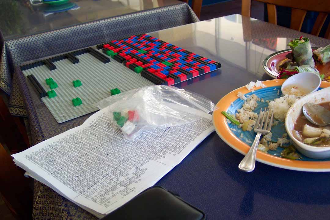 We never did need all of those 20 extra baseplates I hauled through the airports. We never did need the small cat mosaic I built a couple of days earlier, and we never did find out where the original plate #1 went. But, the experience was unique, I was well fed through the day, and I got a free trip to Hollywood out of the whole thing.
