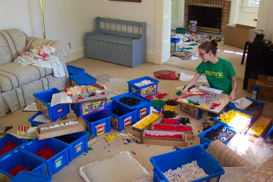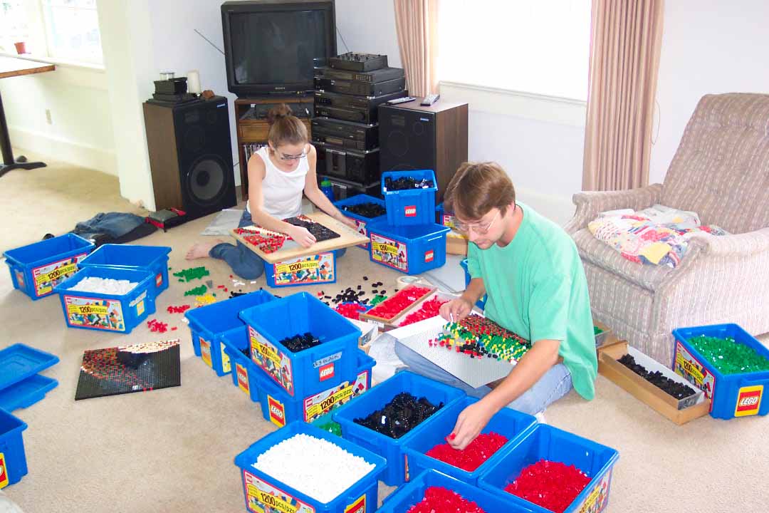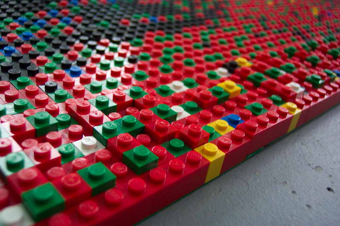 The mosaic is built in a 'Studs Out' fashion (see my Mosaics page if that terminology means nothing to you). The final dimensions of the piece are 75 inches wide by 100 inches tall (240 studs by 320 studs).