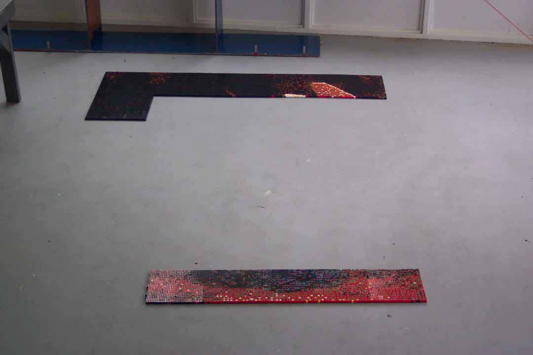 As each plate was completed, I laid them out in my carport (various stages of completion: 1, 2, 3). Abby was working on the plates starting in the upper left corner, while I started in the lower right corner.