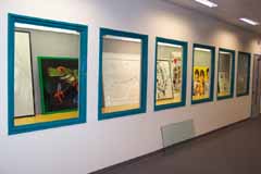 If anything, we actually brought too many mosaics... we couldn't center all of them in the display windows. Once finished, however, the display was a great exhibition of many different styles of mosaics. The works displayed: